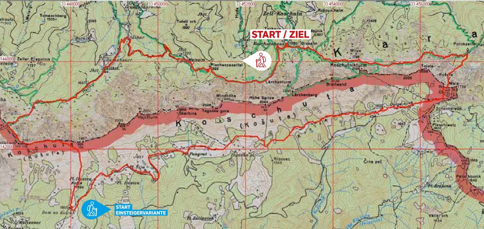 Nujno potrebna primerna fizična pripravljenost. Pot je zahtevna, krajši del poti je zavarovana plezalna pot (A/B). Udeleženci se pohoda udeležijo na lastno odgovornost! Prireditelj ne prevzame nobene odgovornosti.