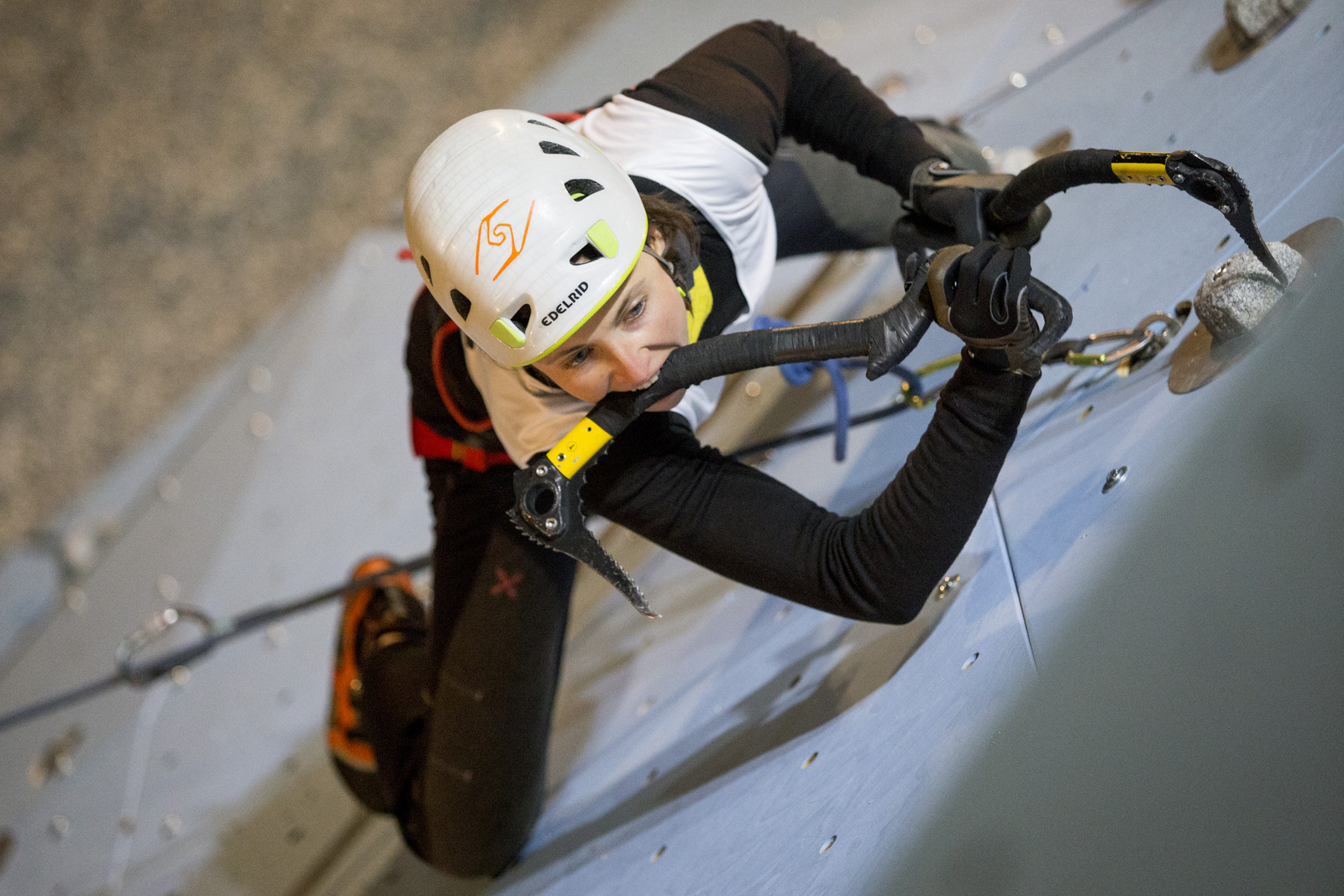 Marija Jeglič v finalu EP v lednem plezanju Domžale 2017