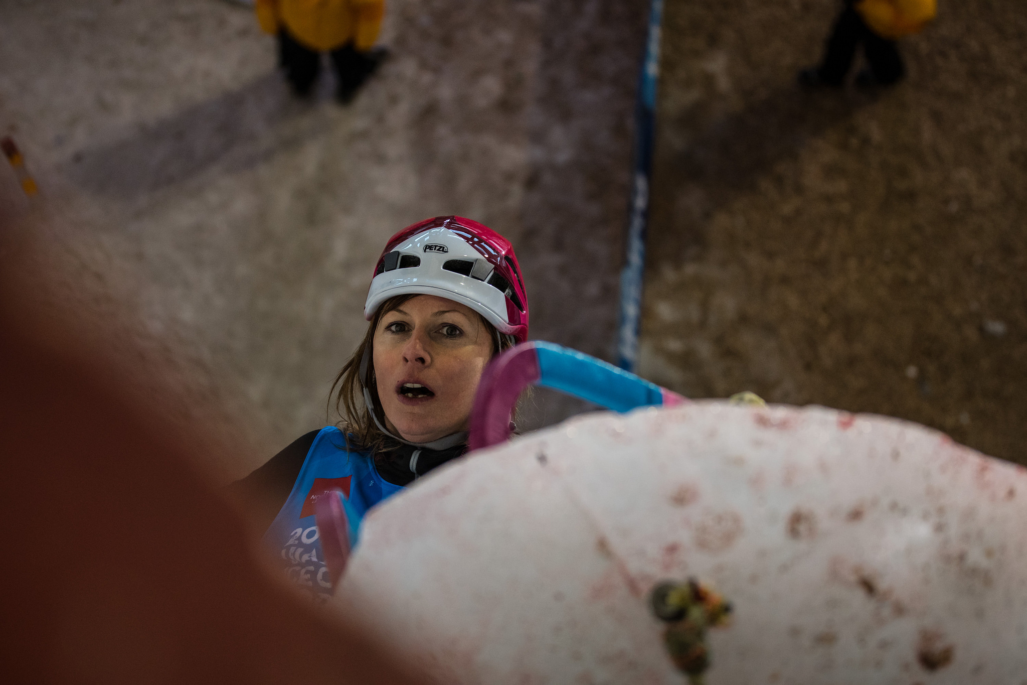 Maja Šuštar, na koncu 17., sredi boja z ledenim sodčkom. Foto: UIAA