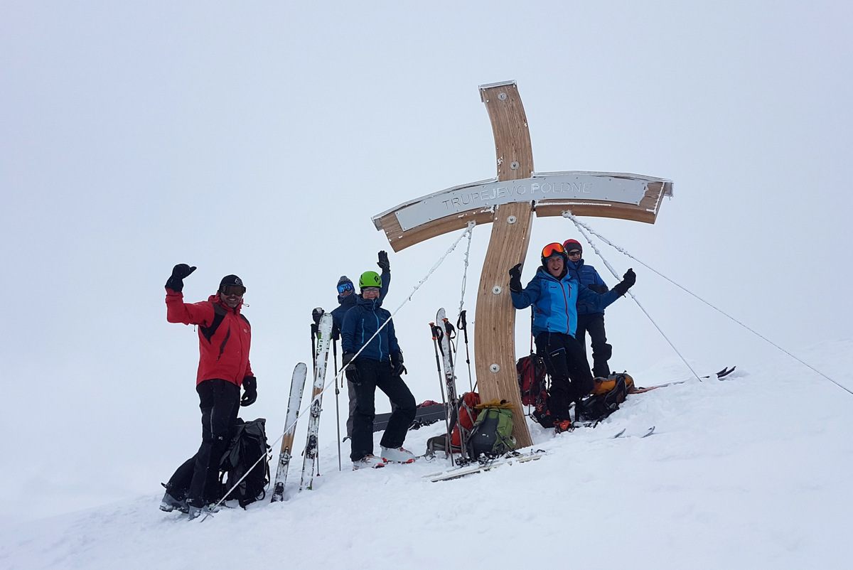 Skupina turnih smučarjev na Trupejevem poldnevu (foto Miha Habjan)