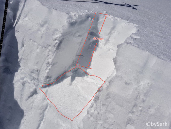 Omeniti je treba, da se je v zadnjih dneh izrazito dvignila temperatura nad ledišče. Ob prerezu snežne odeje lahko vidimo, da je snežna odeja v spodnjih plasteh, pri tleh, mehka in da lahko že ob manjši obremenitvi pride do proženja talnih plazov, sploh na južni h območjih naklonine med 25 in 50 stopinj.