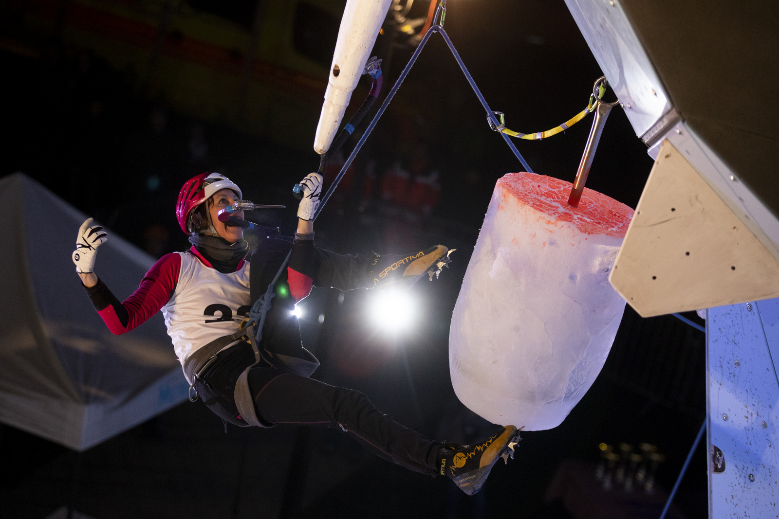 V ženski konkurenci se je v za gledalce zelo atraktivni smeri najbolje znašla Švicarka Sina Goetz, ki se je s cepinom dotaknila vrha finalne smeri in za sabo pustila drugouvrščeno rojakinjo Vivien Labarile, tretja pa je bila Francozinja Marion Thomas. Tik pod stopničkami je domžalsko tekmo končala Slovenka Maja Šuštar (AO Domžale), ki jo je na poti proti vrhu ustavil nerešljivi rebus premikajočih se ledenega sodčka in lesene ledene sveče. "Letos je bila konkurenca malce manj ostra, pogrešali smo nekaj lanskih finalistk EP z zmagovalko Angeliko Rainer, tako da uvrstitev v finale ni bila tako zahtevna, kot je bil težaven naskok na stopničke, kar pa mi ni uspelo, to ostane za drugo leto. Težavni del je bil prehod čez ledena sodčka, ob ogledu smeri sem mislila, da bom s prvega soda napredovala na oprimek, ko sem bila tam, pa sem ugotovila, da ne bo šlo. Odločila sem se za improvizacijo, ki pa je nisem imela izdelane v glavi in ni šlo naprej. Z današnjim nastopom sem zadovoljna z vidika, da sem dala od sebe res vse, napredek opažam predvsem na tehnični ravni, bi pa lahko izboljšala še kondicijsko pripravo, a imam širok spekter dejavnosti, zanimajo me še športno plezanje in hribi, kar kombiniram še s službo in družinskim življenjem," je ocenila plezalka iz Tuhinjske doline, v Domžalah zmagovalka sklepne tekme 6. slovensko-hrvaško-srbskega pokala in že drugo leto zapored skupna zmagovalka v balkanski konkurenci: "Dekleta znotraj SHS-pokala so zelo napredovala, z mojo glavno tekmico Katarino Manovski iz Srbije sva imeli letos zelo izenačene boje, kar je dobra motivacija tudi za naprej."