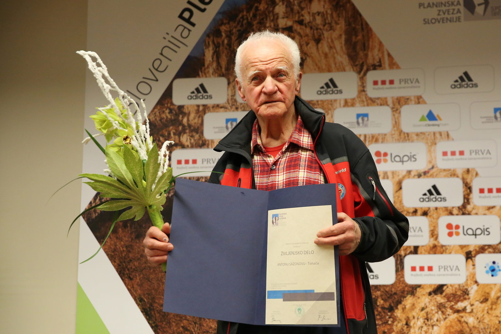 >>> obrazložitev priznanja za življenjsko delo v alpinizmu (pripravil: Kazimir Drašlar - Mikec)Anton Sazonov - Tonač, prejemnik priznanja PZS za življenjsko delo v alpinizmu (foto Oto Žan)