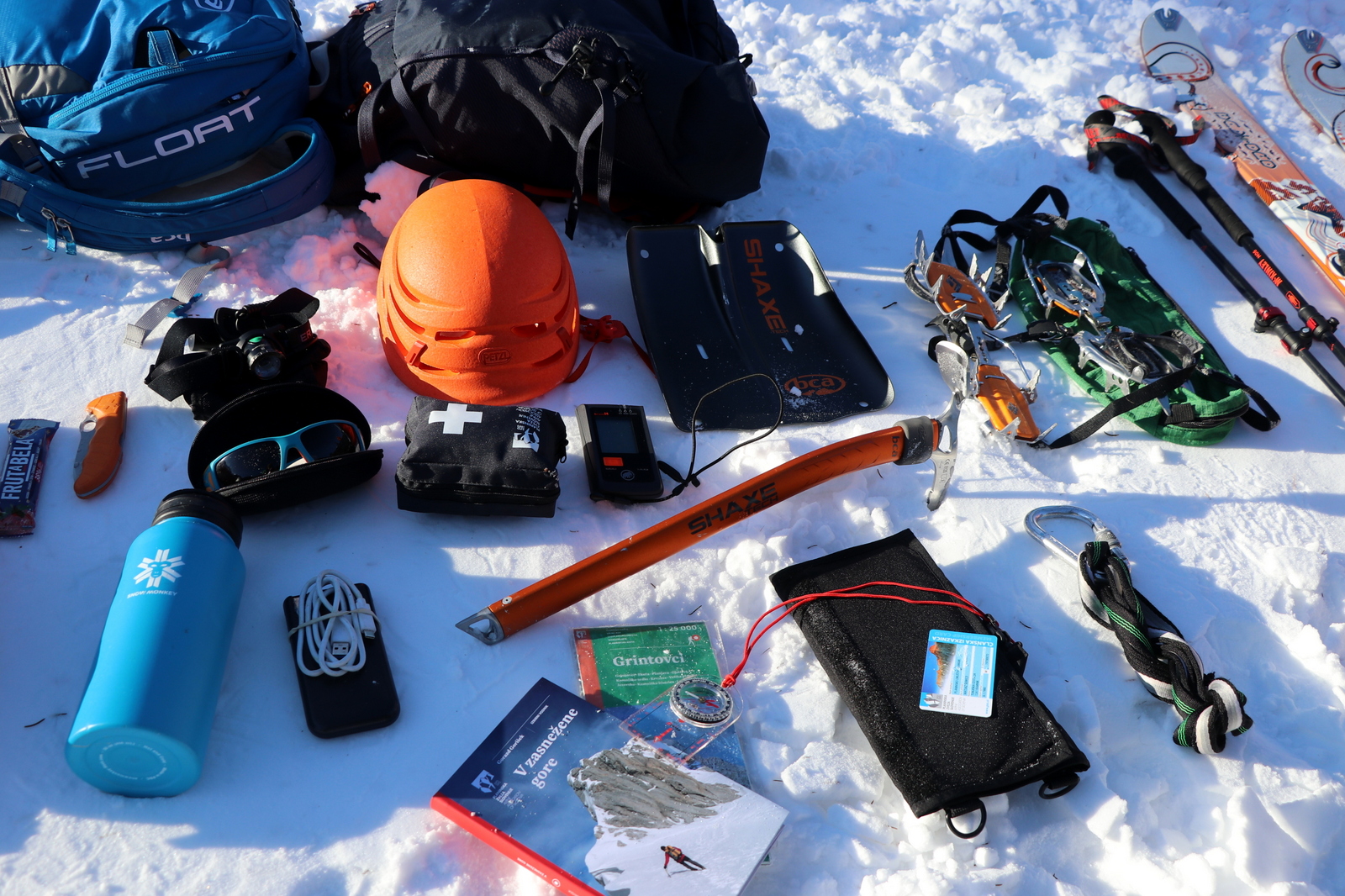 Tudi ko bo čas ugodnejši za obisk gora, ne smemo pozabiti na popolno zimsko opremo - plazovni trojček, cepin, dereze in čelado (foto Manca Ogrin)