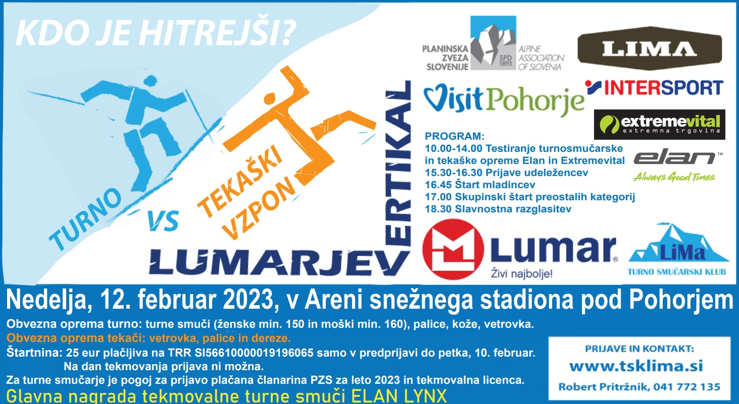 Zaradi slabih snežnih razmer bo prva slovenska tekma v tekmovalnem turnem smučanju bo 12. februarja v Mariboru, Lumarjev vertikal, ki bo štel za državno prvenstvo v vzponu. Na isti progi se bodo sočasno pomerili tudi tekači in tekmovali s turnimi smučah. Prva nagrada bodo tekmovalne turne smuči Elan Lynx, ki jih bo dobil eden izmed turnih smučarjev