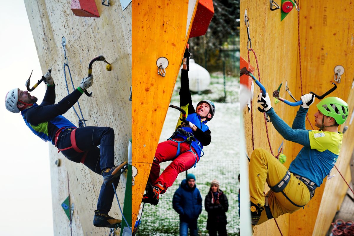 Na prvi tekmi EP 2023 v lednem plezanju v Žilini so nastopili štirje Slovenci: Gregor Šegel, Miha Guna, Blaž Grad in Urban Bečan (foto arhiv EP Žilina)