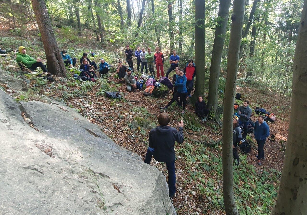 V soboto dopoldne (14.oktobra) smo se udeleženci dobili v plezališču za plezanje z orodji Znojile v Zasavju. Najprej smo se seznanili s samim plezališčem Znojile, nato pa smo predstavili osnove in specifike plezanja z orodji v plezališčih ter specifike pri varovanju. Za začetnike smo napeljali nekaj lažjih smeri v levem delu plezališča, bolj izkušeni so se lotili plezanja smeri v vodstvu v osrednjem in desnem delu plezališča. Tekom plezanja smo predelovali plezalno tehniko plezanja z orodji, osnovne gibalne prvine, uporaba cepinov in derez ter se preizkušali v številnih smereh različne težavnosti. Udeleženke in udeleženci so bili zagnani, veliko smo preplezali.