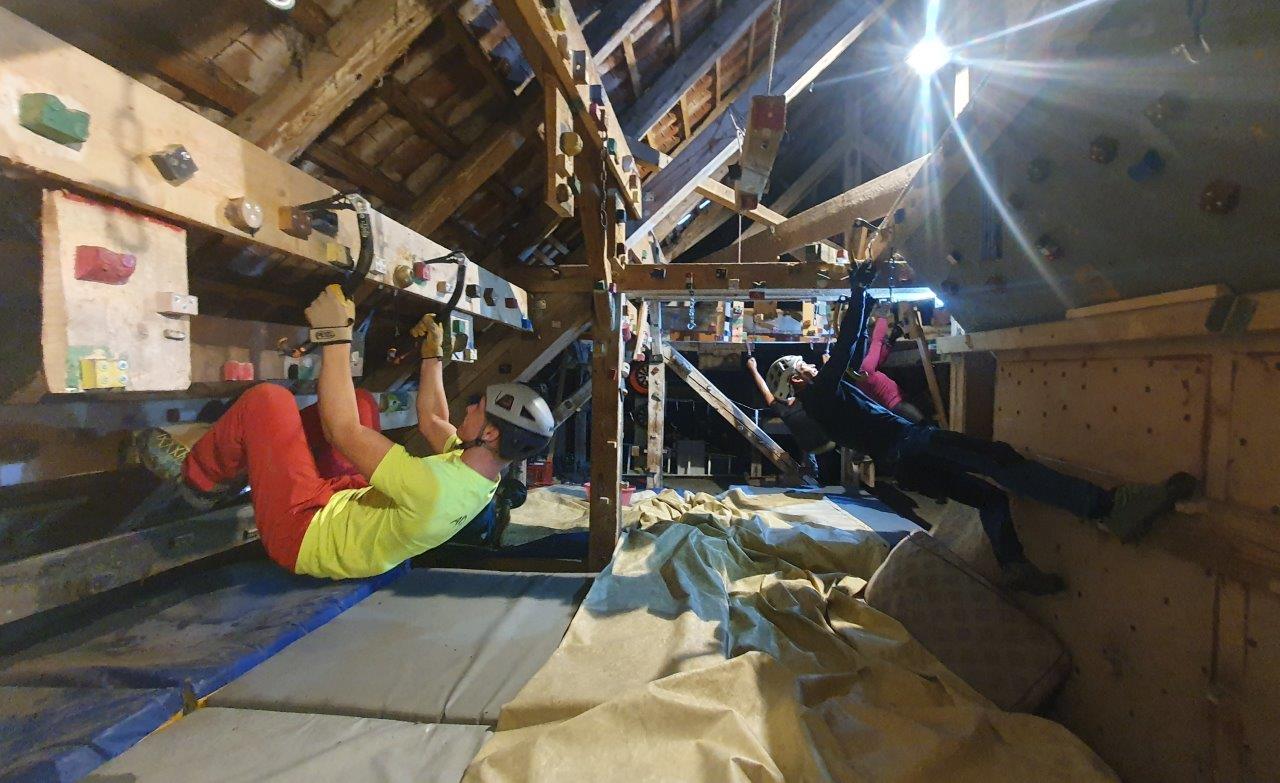 V nedeljo (15. oktobra) nam je zelo slabo vreme preprečilo plezanje v naravnem plezališču, zato smo se odpravili v Trbovlje, kjer imajo lokalni plezalci pripravljen poligon in umetno steno za treninge za plezanje z orodji. V praksi smo preizkusili različne prvine in tehnike treninga s cepini. Po približno 4h urah smo trening zaključili in se odpravili proti domu.